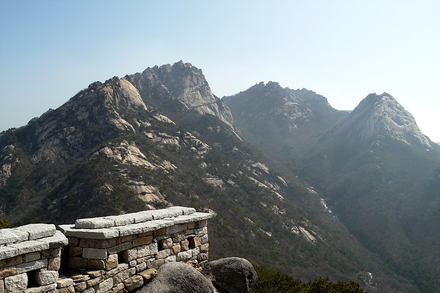 竿(東将台) ・羅漢峰(羅漢峰), 東北に男装台(南将台) ・ズングソングムン(中城門), 西北に北醤台(北将台)が