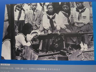 <軍事訓練を受けている沖繩女子高生...ヒメユリ記念館>