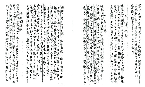 此荒仕事の実行者は訓練隊の外守備兵の後援あり(後援は或は当からざるが如し)尚ほ守備兵の外に日本人二十名若あり熊本人多数を占(漢城新報社迹)中に新聞記者数名又医師商人もあり 隨て洋?和?相混ぜり 岡本は大院君と同時入城し実行の任に当れり 守備隊の将校兵卒は四門警衛に止まらず門内に侵入せり 殊に?次馬連は深く内部に 入口み王妃を引き出し二三個処刃傷を及し且つ裸?とし局部検査(可笑又可怒)を為し最後に油を注ぎ焼失せる茅 誠に之を筆にするに忍びざるなり 其他宮内大臣は頗る惨酷なる方法を以て殺害したりと云う 右は士官も手伝へたるも主として兵士外日本人の所為に係るものの如し大凡三時間余を費して右の荒仕事を与したる後右日本人は短銃又は劔を手にし徐徐として光化門 (王城正門)を出て群集の中を通り抜けたり 時已に八時過にて王城前の広小路は人を以て充塞せり