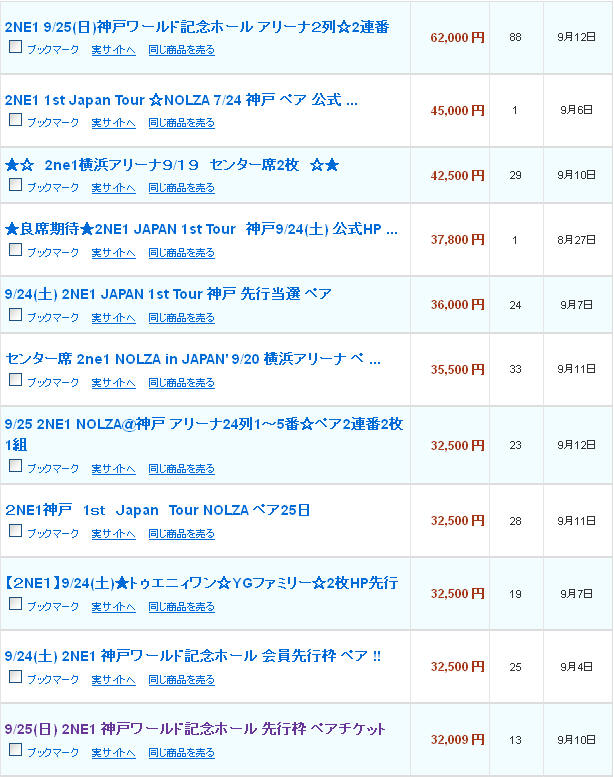일본 옥션의 실태를 잘 모르므로 2NE1의 일본 공연 티켓이 얼마에 옥션에서 팔리고 있는지 검색해 보았다.