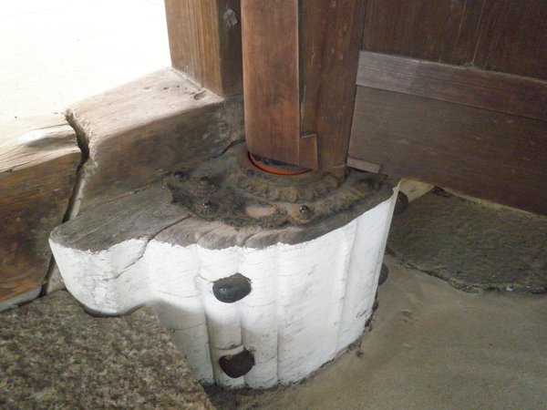 これはhinge を使用しない、日本の伝統建築主流の開き戸である。