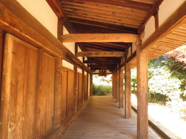 호우카이지 아미다도우.옆에 통해진 목재에 구멍을 뚫고 문을 붐비고 있다.