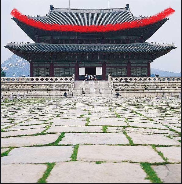경복궁 근정전이다. 경복궁 근정전의 처마선은 완전한 원호를 그리고 있다.