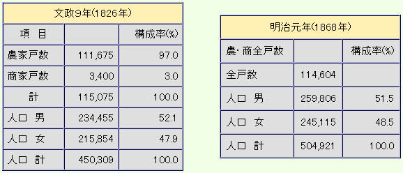 윗표는 에도막부 말기부터 메이지 초년의 야마구치현의 인구 추이이다.어느 시기도 여성이 남성과 비교해 적다.자의적 인구 조절(솎아냄)의 결과라고 생각해진다.