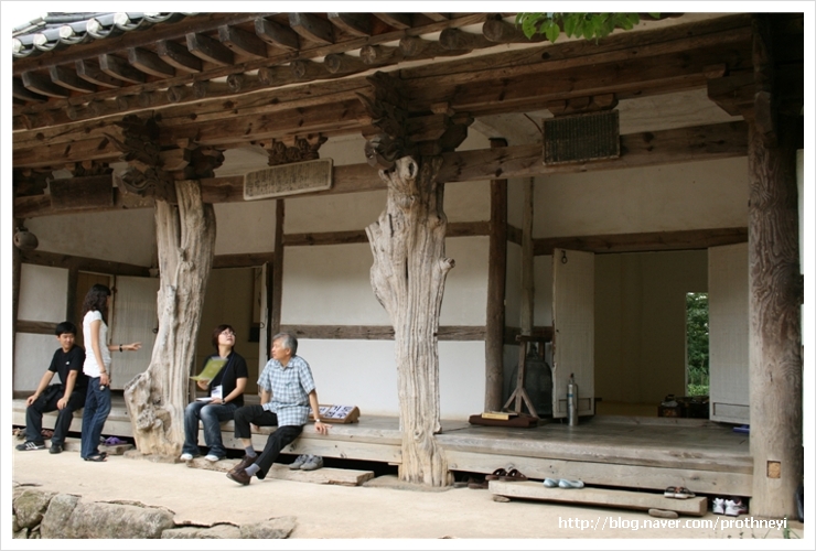 목재 부족 떄문에 아무 나무로 다듬지 않고 건축을 지어 생겼다는겁니다.