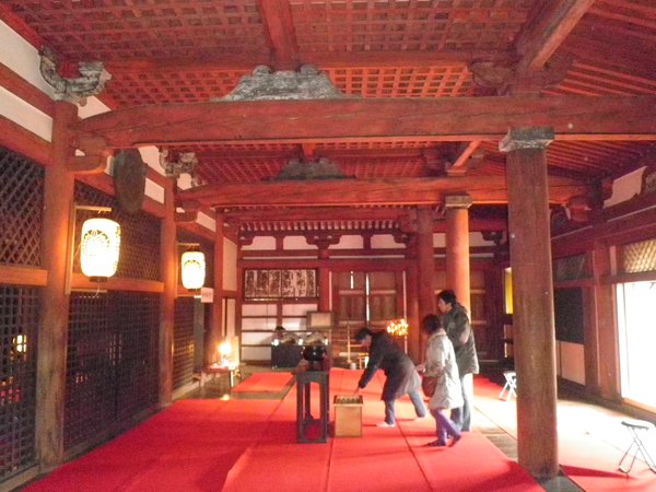 Naijin内は梁が架からないが、折上天井でGejinより室内高が高められている。要するにGejinよりNaijinの方が格上なのだ。中央の厨子は重要文化財。