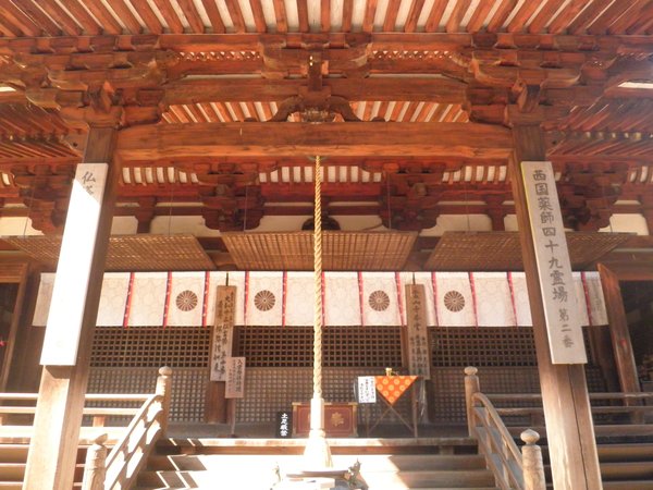 近づくと、奈良の密教仏堂としては軒下や向拝がかなり賑やかなことに気付く。向拝には出組の組物に輪違支輪、菱形支輪を組み合わせる・・・しまった、輪違支輪の写真を撮り忘れたw