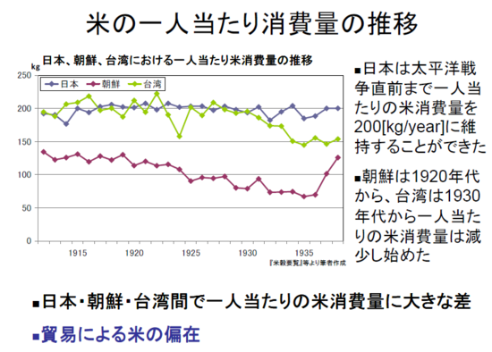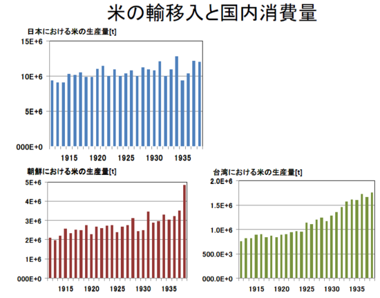 다음, 일본사 분명히, 생산량 인구 거의 일치하고 있는 시기 있어, 그것 19 세기말에서 20 세기 초두에 걸친 이었던 것이지만, 이러한 시기 오히려 예외적이라고 해야 하는 것으로, 1870년대에는, 생산량 2500 만석 정도였는데 대하여, 인구 3300~3400만명이었다., 19 세기말 이후에는 수입도 있고, 국내 생산량 소비량 웃돌고 있는 일도, 인구생산량 관계 추측하는 차이에는 고려 넣지 않으면 안 될 것이다.