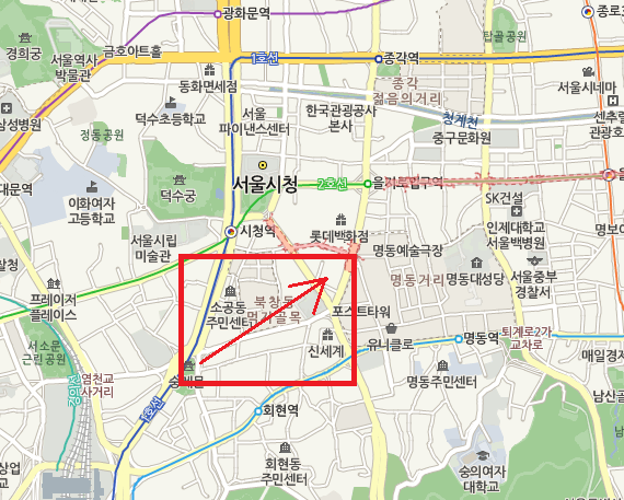 (북창동 언덕에서 북쪽 종로의 보신각 방향을 향해 찍은 사진)