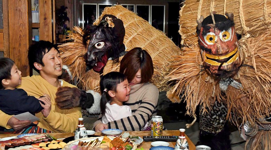 菊地博彦さん(36)宅ではスネカが「泣く子は居ないか」「悪い子は居ないか」と大声を出すと、長女の莉乃(りの)ちゃん(5)が「お利口にします」「良い子になります」と泣きながら答えていた。