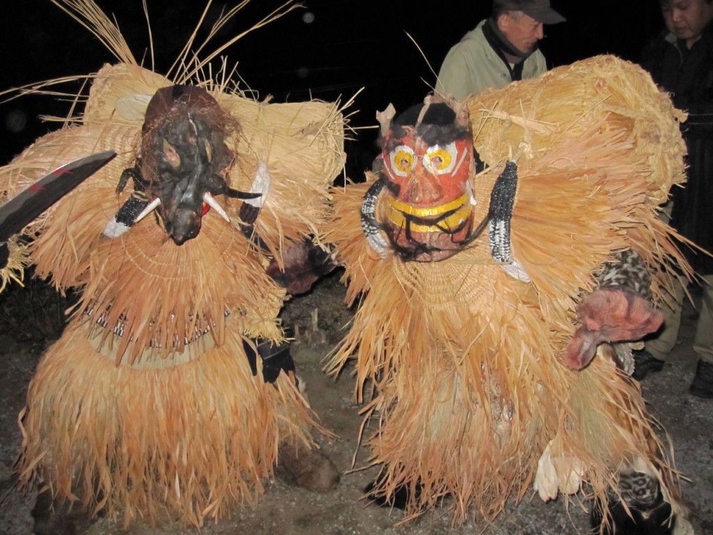 이와테현 오후나토시 산리쿠쵸 요시하마에서 15일, 음력 정월 대보름의 전통 교지「요시하마의 스네카」를 해 무서운 면을 붙인 스네카가 민가를 방문하고 아이들을 위협하면서 걸었다.