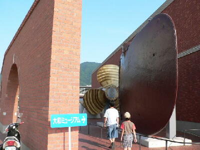 다이와 박물관 정면옆의, 전함 무츠의 라다-와 추진기.
