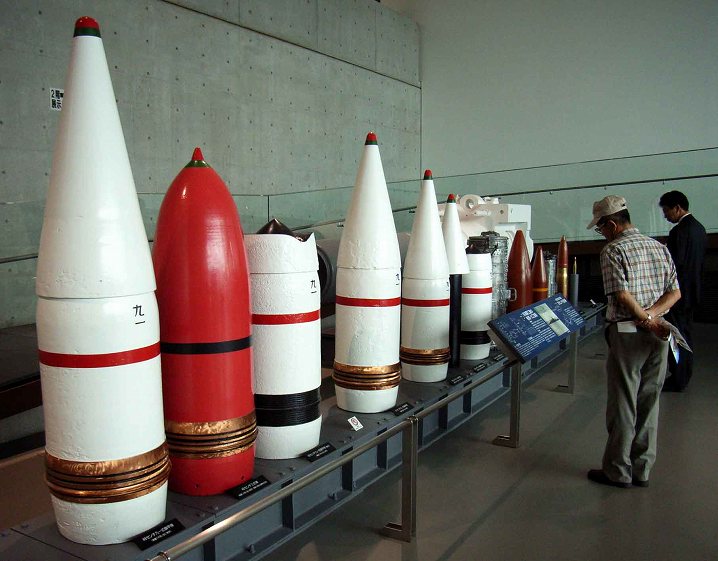 제일 왼쪽이 철강탄으로, 붉은 것이 3식탄(기화 폭탄, 보고 싶다 포탄?.)