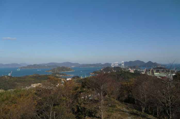 四国と大島の間を結ぶ来島海峡大橋も見渡せます。