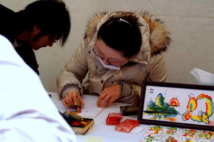 당아래에서 무언가에 분장을 한 사람입니다 중국의 경극의 분장이므로, 무슨역의·분장인가는 잘 모릅니다·