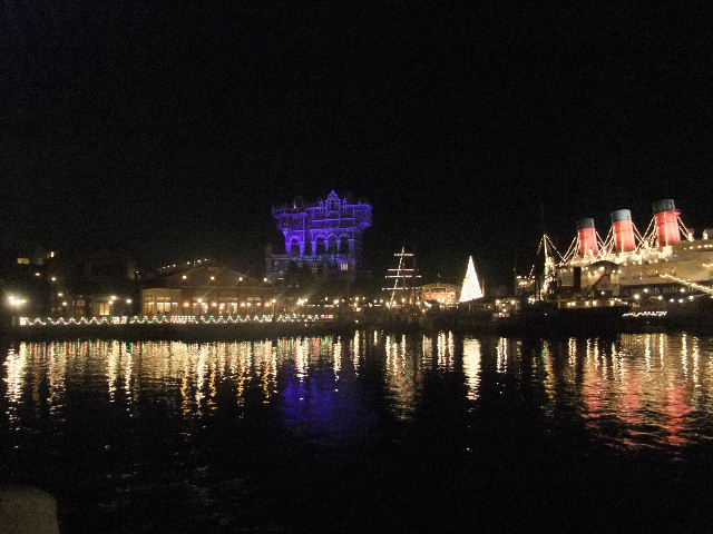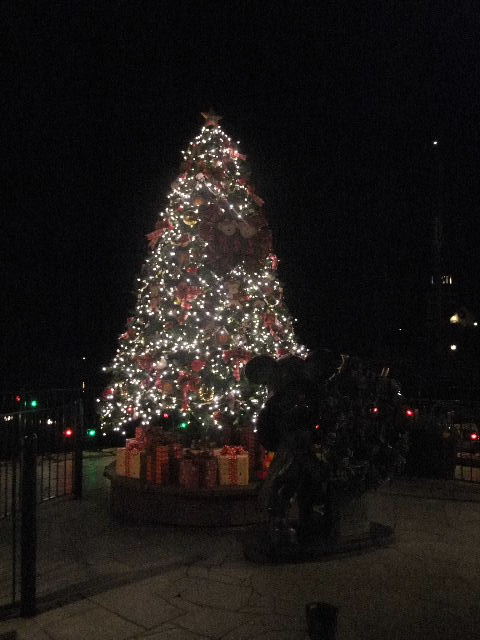 写真正面は、ミッキーマウス(Mickey Mouse)が飾り付けをしたと言う設定の、メディテレーニアンハーバー(Mediterranean Harbor)のクリスマスツリー(Christmas tree)。