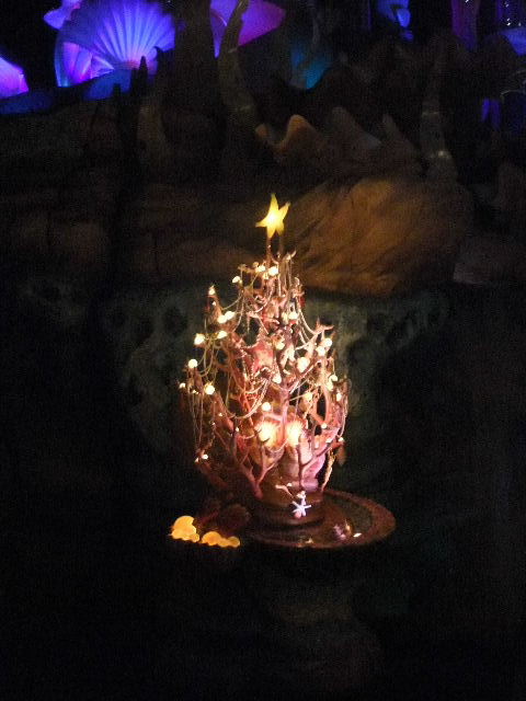 マーメイドラグーン(Mermaid Lagoon)のクリスマスツリー(Christmas tree)。アリエル(Ariel)が飾り付けをしたと言う設定になっています。