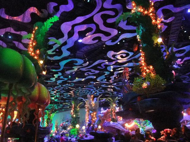 写真以下9枚。マーメイドラグーン(Mermaid Lagoon)。Disneyの映画、「The Little Mermaid」の主人公、アリエル(Ariel)と、その仲間達が暮らす海底王国(海の中の世界)をテーマ(theme)にしたエリア(area)です。東京disney seaの7つのエリア(area)の内、ミステリアスアイランド(Mysterious Island)と並んで、最も規模の小さなエリア(area)であり、小規模な屋内遊園地型の施設を中心としたエリア(area)です。