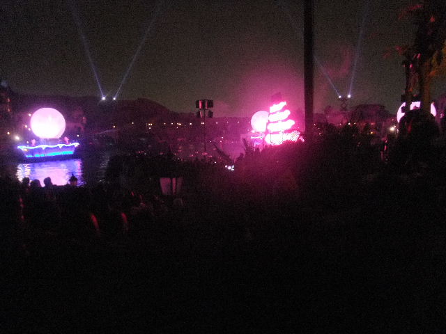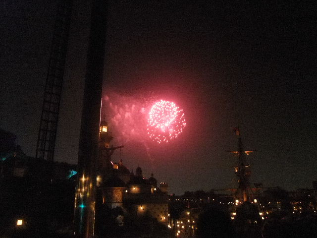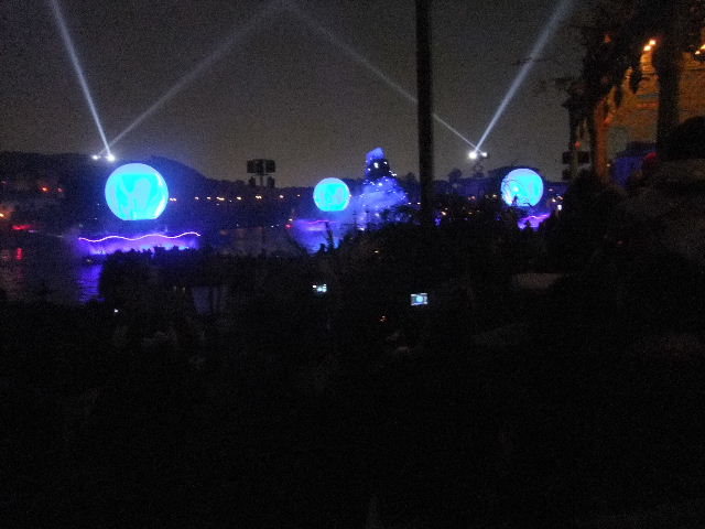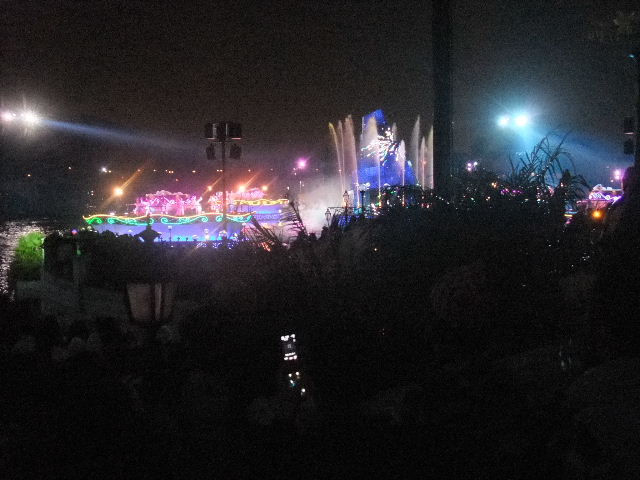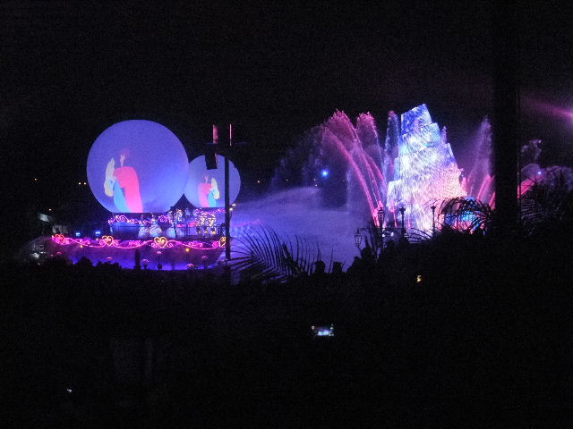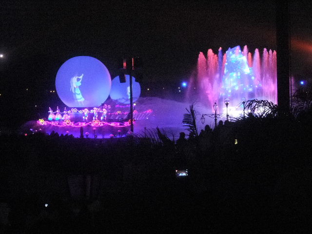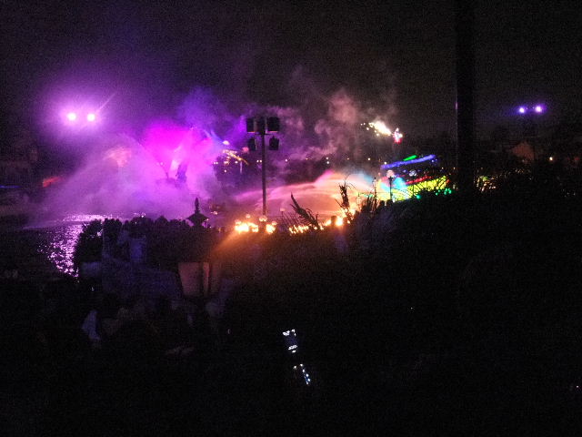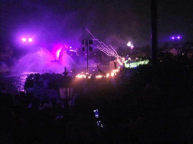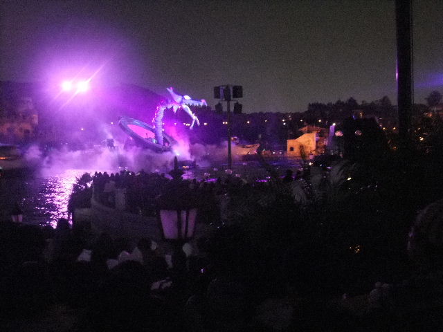 写真以下22枚。ファンタズミック(Fantasmic!)と言う、夜に、メディテレーニアンハーバー(Mediterranean Harbor)で行われているショー(show)です。