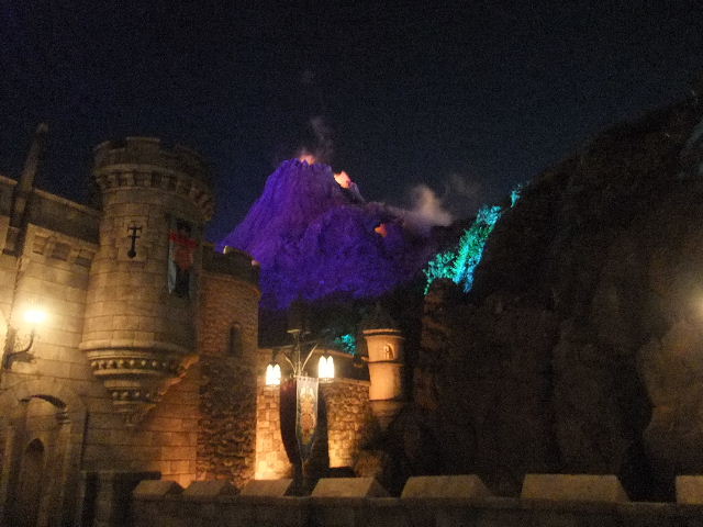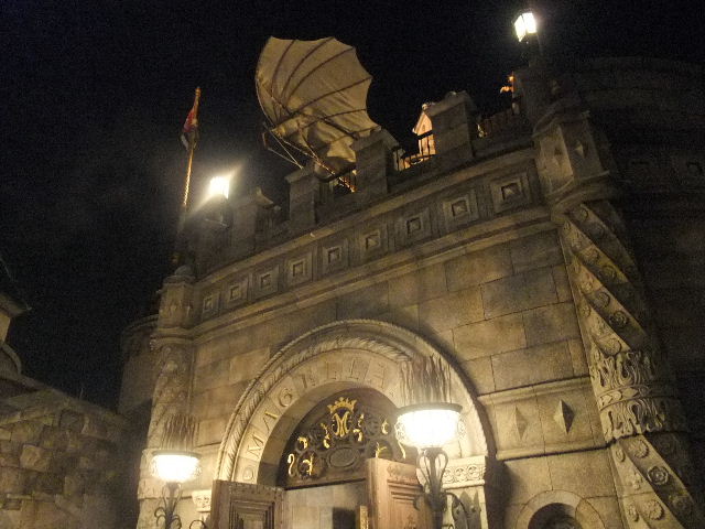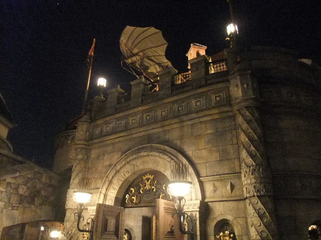 向こうに見える山は、プロメテウス(Prometheus)火山。東京disney seaの象徴的な建造物となっています。その手前に見える大きな建物は、コロンブス(Columbus)やマゼラン(Magellan)が活躍した、冒険や発見に沸く、大航海時代の、南ヨーロッパの要塞と言う設定の建物で(この建物には、アトラクション(attraction)、レストラン等が入っています)、東京disney seaで目立つ建物の一つとなっています。