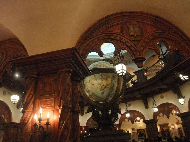 レストランの中央の地球儀は、ゆっくりと、30分で、一回転します。