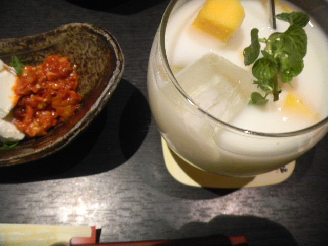 이 때 먹은, 안주의 하나.크림 치즈(cream cheese)와 체쟈(설의 위의 채소 절임)의, 가벼운, 안주.「왕(wan)」의, 한국적인 요소를 도입한, 안주의 하나입니다.이것은, 내가, 주로 먹었습니다.