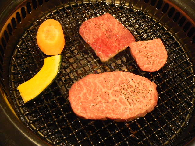 写真以下4枚。焼肉。全て牛肉です(ちなみに、日本で、単に(単純に)焼肉と言う場合、通常、牛肉の、焼肉の事を意味します)。