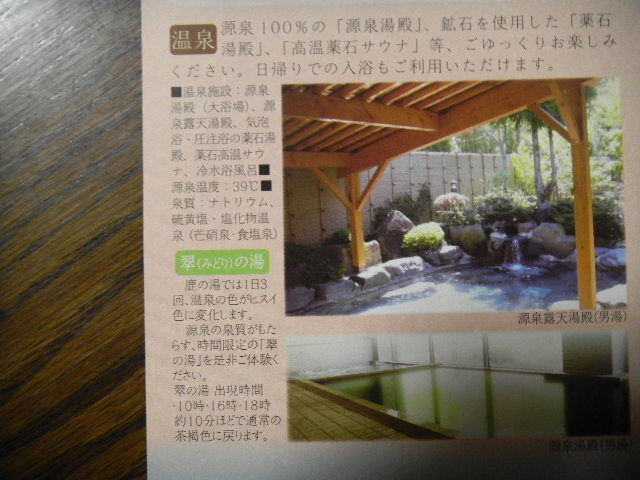 この温泉施設の、温泉風呂の例。。。パンフレット(leaflet)より。。。男用共同温泉風呂も、女用共同温泉風呂も、似た感じだと思います。