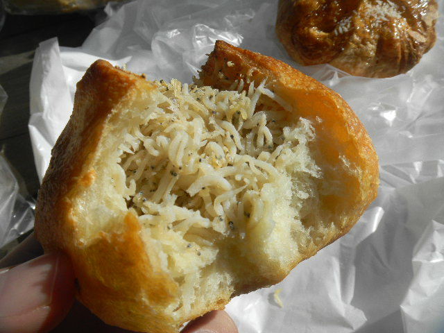 写真以下2枚。シラス(鰯の子供)パン。シラス(鰯の子供)は、湘南(syounan)の名物(よく獲れる産物)となっています。