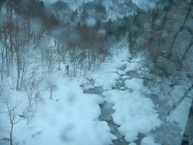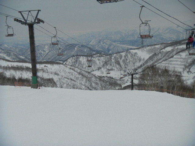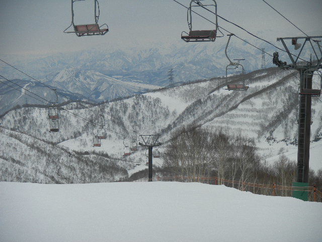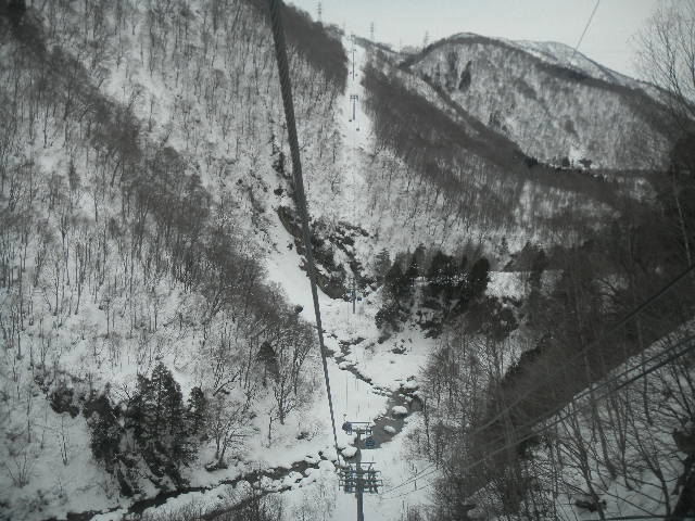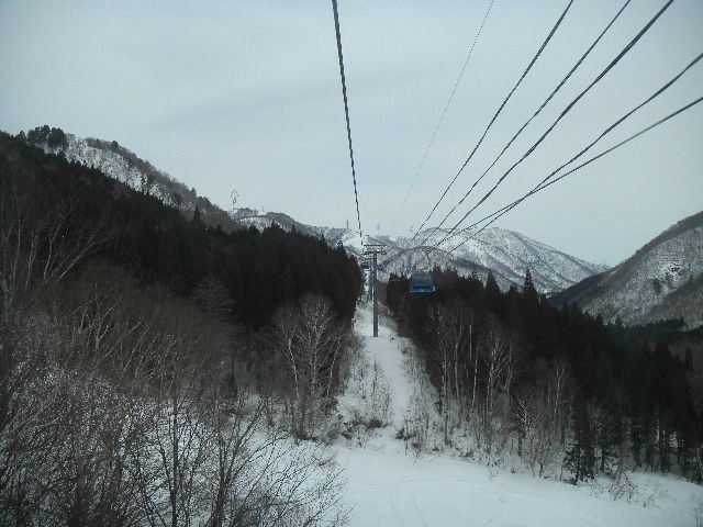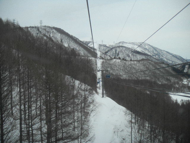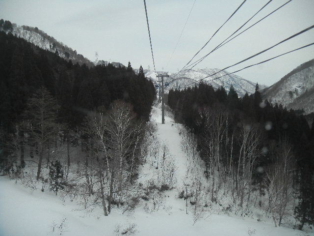 写真以下2枚は、3日目(最終日)に、苗場(naeba)スキー場と、かぐら(kagura)スキー場を結ぶゴンドラ(gondola lift)から撮影した写真ですが、3日目(最終日)は、生憎、午後1時半頃から、雨が降り出してしまいました。個人的に、スキー場で(スキー(skiing)をしていて)、最も嫌な天候は、雨です(2番目に、嫌な天候は、霧で、前方が見えない天候)。3日目(最終日)は、早目に、スキー(skiing)をするのを止めて、苗場(naeba)princeホテルの温泉施設(安い値段で利用する事が出来て、温泉露天(野外)風呂があり、(中級classから中上級classのリゾート(resort)ホテルの温泉施設だけあって)設備・備品が、しっかりとしていて、中々、良い温泉施設です。総合的な魅力は、後述する、雪ささの湯(yukisasa no yu)と比べると落ちますが)の、温泉風呂に入ってから(入浴してから)、帰って来ました。ちなみに、苗場(naeba)(苗場(naeba)スキー場の周囲)には、雪ささの湯(yukisasa no yu)と言う、とても温泉の質が良い、温泉施設もあります。