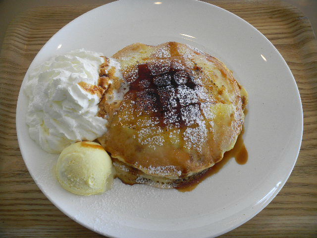 デザート(dessert)。クレームブリュレ(creme brulee)パンケーキ(pancake)。