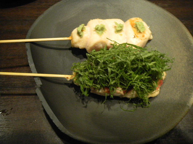 사진 이하 2매.삼미선(sasami.닭의, 흉육에, 근접한, 지방의 적은 부위의 고기))의, 와사비와 매화 자쏘.