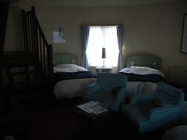 写真以下。この時、私達が、宿泊した客室(建物)。前述の通り、客室は、それぞれ、ベッド(bed)が、二つ、又は、四つある、ドーム(dome)型の、独立した建物から成ります(内装は、違っても、建物の大きさは、皆、同じ様です)。室内の、ゆとりと言う面からすれば、ベッド(bed)が、二つの部屋の方が良いのですが(建物(客室)の大きさは、皆、同じですが(たぶん。。。)、ベッド(bed)の数が、少ない分、空間に、ゆとり(余裕)があり、また、ベッド(bed)の大きさも、大き目)、ピーターラビット(Peter Rabbit)を、テーマとした、客室と、星の王子様(The Little Prince・Le Petit Prince)を、テーマとした、客室は、ベッド(bed)が、四つの部屋しかありません。この時は、彼女と、星の王子様(The Little Prince・Le Petit Prince)を、テーマとした、客室と、ピーターラビット(Peter Rabbit)を、テーマとした、客室、どちらの客室に宿泊しようかと迷ったのですが(この時は、それ以外の、客室には、泊まるつもりはなかった)、星の王子様(The Little Prince・Le Petit Prince)を、テーマとした、客室に宿泊する事にしました。なお、同じ、星の王子様(The Little Prince・Le Petit Prince)を、テーマとした、客室であっても、内装は、客室毎に、少しずつ異なる様です。ベッド(bed)は、四つありますが、三人から四人位で泊まるのならば、小さい子供連れの家族(夫婦と、子供、一人から二人位)が泊まるのに調度良いと言った感じで、大人四人が泊まるのは、少し窮屈と言った感じです(まあ、高校生や大学生の、友達同士と言った、若者の友人同士ならば、あまり気にならないかもしれませんが。。。)。この時は、彼女と二人で泊まったのですが、大人の、カップル(couple)ならば、二人で、ゆったり利用して、調度良いと言った感じです。