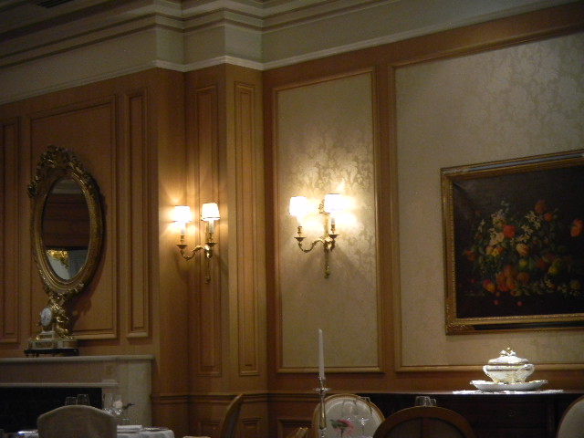 写真以下3枚。このレストランの内装(高級レストランです)。