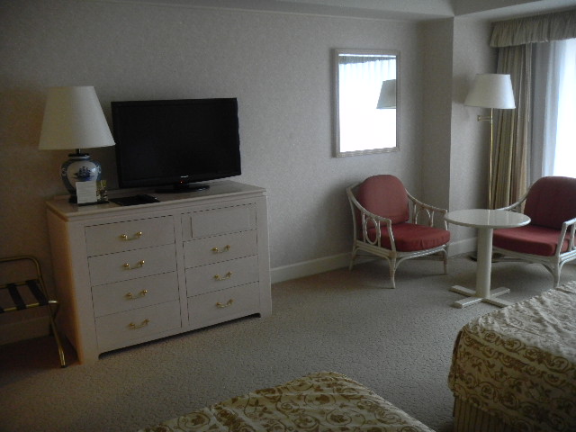 写真以下。この時、私達が、Intercontinental Yokohama Grandホテルで宿泊した客室。このホテルで、安いclassの客室です。Intercontinental Yokohama Grandホテルの、安いclassの客室は、軽快で、カジュアル(casual)な雰囲気です。よく言えば、リゾート(resort)ホテル的、悪く言えば、高級ホテルらしい重厚さは、あまり感じられない部屋となっています。時の経過により、客室の内装は、少し、くたびれて来ている感じです。Intercontinental Yokohama Grandホテルは、客室の改装を、徐々に、進めて来ている様ですが、Intercontinental Yokohama Grandホテルの、安いclassの客室は、競争力の維持の為には、そろそろ、全面的な改装も必要かなと、今回は、思いました。