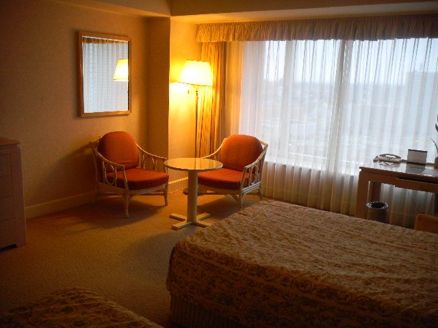 写真以下。この時は、Intercontinental Yokohama Grandホテルで、安いclassの客室(Intercontinental Yokohama Grandホテルの客室を、値段別に、8つのクラス(class)に分けた場合、宿泊費が、下から2番目に、安いclassの客室)、に宿泊しました。