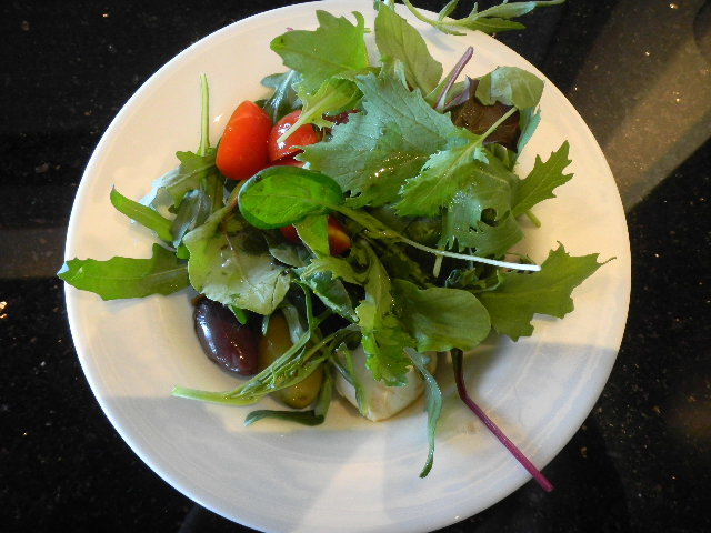 サラダ(salad)は、もう一皿、食べました。写真下の、野菜に埋もれている、白い物は、水牛(water buffalo)のモッツァレラチーズ(Mozzarella)。