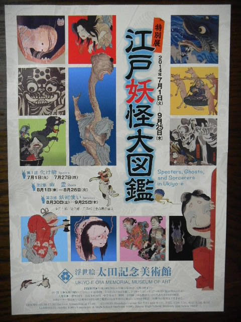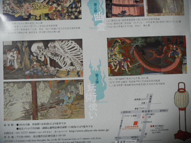 사진 이하 2매.이 때, 본, 오오타(ota) 미술관에서, 현재 개최중의, 요괴(yokai)(일본에서, 옛부터 전해지고 있는, 몬스터(monster)의 총칭)를 소재로 한, 17 세기부터 19 세기의, 강호시대의 풍속화(ukiyoe.일본의 17 세기부터 19 세기의, 대중용의 그림·대중용의 판화)의 전람회(exhibition)의, 광고지(leaflet).