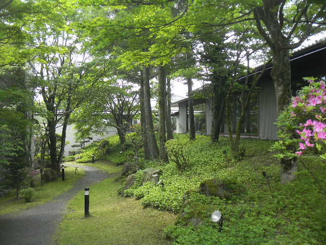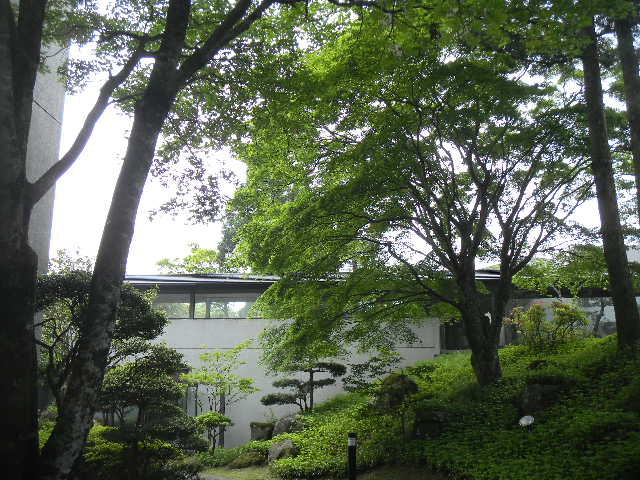 写真以下。この時、私達が、箱根(hakone)で宿泊した、中級classの、リゾート(resort)ホテル、箱根(hakone)湯の花(yunohana)温泉ホテル(1988年開業)。ホテルの建物(1988年完成)の、設計は、池原 義郎(ikehara yoshiro。1928年生まれ。日本の有名な建築家。早稲田(waseda)大学の、建築学の名誉教授。世界的に有名と言う程ではない)が、行いました(このホテルは、池原 義郎(ikehara yoshiro)の、代表的な作品の一つと言えると思います)。このホテルは、現代的なデザイン(design)の中に、日本の伝統的な要素を取り入れていて、温泉リゾート(resort)ホテルと、温泉旅館の、中間と言った感じの宿泊施設です(現代版の、日本式の温泉旅館と言った感じです)。