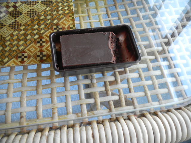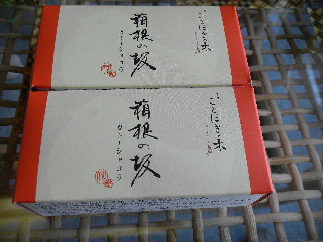 写真以下3枚。このホテルの、おまけの(無料の)、チョコレートケーキ(chocolate cake)(箱根(hakone)の、強羅(goura)の、菓子会社の製品)。