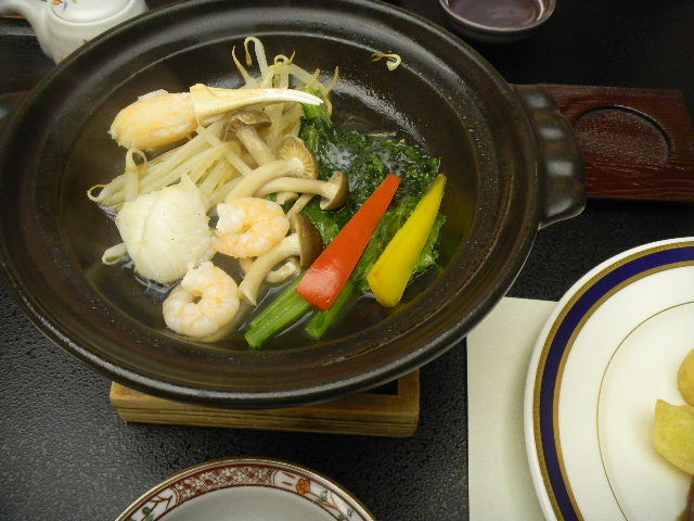 写真以下10枚。この日の夕食は、このホテルの食堂(dining room)で食べました。このホテルの食事は、日本料理となっています。