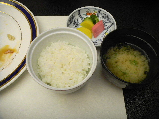 ご飯(rice)、漬物、味噌汁(miso soup)。