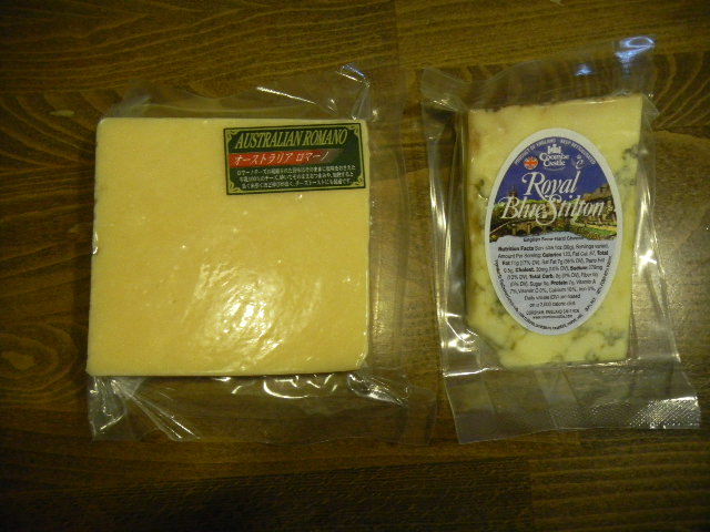 この時の、別荘滞在時に、ワイン(wine)の、おつまみとして食べたり、サラダ(salad)に入れて食べたりしていた、チーズ(cheese)。左、オーストラリア産の、ロマーノチーズ(Romano cheese)。右、スティルトン(Stilton)と言う、イギリスの、ブルーチーズ(blue cheese)。