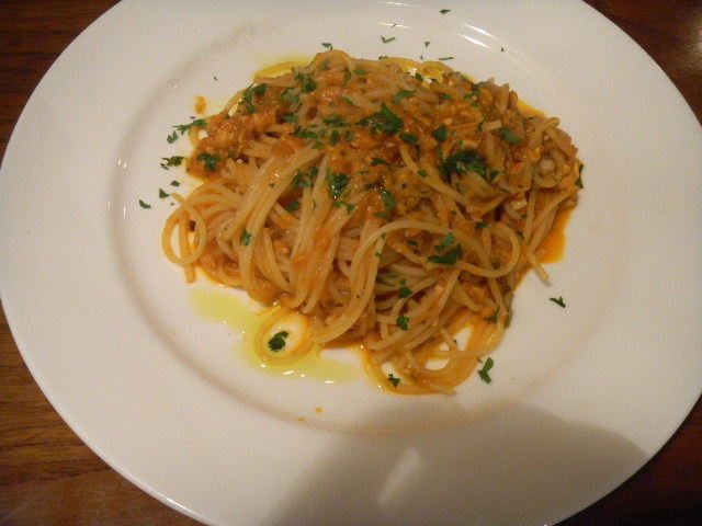 魚介(seafood)の、ラグーソース(ragu)の、パスタ(pasta)。