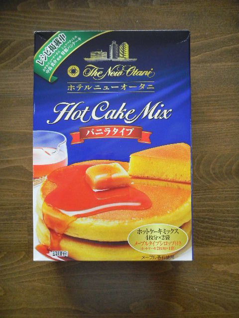 この、パンケーキ(pancake)粉を使って、パンケーキ(pancake)を作りました。パンケーキ(pancake)粉を使うと、パンケーキ(pancake)粉に、牛乳と玉子を加えて、混ぜて、焼くだけで、簡単にパンケーキ(pancake)を作る事が出来ます(家庭用のパンケーキ(pancake)粉を使って作るパンケーキ(pancake)は、子供の頃、よく、朝食や(学校が休みの日の)昼食として食べていました(ちなみに、森永(morinaga)のパンケーキ(pancake)粉が、実家の、定番の(一番、よく使う)、パンケーキ(pancake)粉でした))。日本では、森永(morinaga)(日本の大手(大規模)菓子・食品会社の一つ。1899年創業)のパンケーキ(pancake)粉(1957年に発売開始。安くて、質が高くて、美味しい)が、おそらく、昔から、最も、よく売れているパンケーキ(pancake)粉で、日本の代表的な、大衆的なパンケーキ(pancake)粉と言った感じですが、これは、ホテルニューオータニ(英語名は、Hotel New Otani。東京を代表する高級ホテルの一つ。1964年開業)の、パンケーキ(pancake)粉です。日本では、初めて、国産(日本産)のパンケーキ(pancake)粉が、発売されたのは、1931年の事ですが(森永(morinaga)のsiteを参考にしました)、(日本では)、1950年代後半から1960年代初めにかけて(ちなみに、森永(morinaga)のパンケーキ(pancake)粉が発売されたのは、前述の通り、1957年)、パンケーキ(pancake)粉の普及と連動するように、家庭で食べる、おやつ・食べ物(朝食・昼食)としてのパンケーキ(pancake)の大衆化が、急速に進みました(1960年代初め当時、日本では、主な食品会社だけでも、17社も、パンケーキ(pancake)粉を製造していたようです)。このパンケーキ(pancake)粉は、ホテルニューオータニ(Hotel New Otani)(東京を代表する高級ホテルの一つ)のブランド(brand)のパンケーキ(pancake)粉ですが、ホテルニューオータニ(Hotel New Otani)のブランド(brand)のパンケーキ(pancake)粉と言っても、ホテルニューオータニ(Hotel New Otani)は、パンケーキ(pancake)粉作りの監修(助言・指導)とホテルニューオータニ(Hotel New Otani)のブランド(brand)名を貸しているだけで、実際の、製造・販売は、永谷園(nagatanien。日本の大手(大規模)食品会社の一つ。1950年代初め設立だが、その起源は、18世紀前半まで遡る)が行っており、(安売りマートを含む)マートで、普通に、たくさん販売されている物です。したがって、森永(morinaga)のパンケーキ(pancake)粉よりは、高いですが、所詮、大規模食品会社の、大量生産のパンケーキ(pancake)粉である事には変わりなく、絶対的には、安いです。