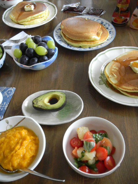 写真以下5枚。この日の、遅い昼食兼おやつは、パンケーキ(pancake)にしました。