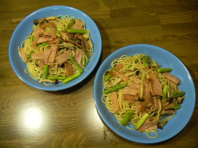 写真以下2枚。茸とベーコン(bacon)のパスタ(pasta)。ちなみに、この前日の夕食も、パスタ(pasta)でしたが、彼女は、毎食、パスタ(pasta)でも良いと言う位、パスタ(pasta)好きです。私も、パスタ(pasta)は好きですが、彼女には敵いません(私は、パスタ(pasta)は、一日一食ならば、毎日いけますが、それでも、一日一食だとしても、三週間位が、限度かも(三週間位、毎日、パスタ(pasta)が続いたら、飽きて、パスタ(pasta)は、嫌になるかも)。。。w)。