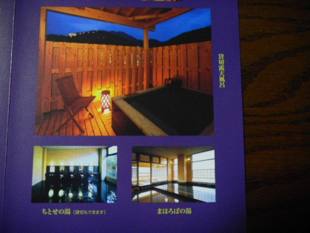 写真以下2枚。この温泉旅館の、温泉風呂の例。この温泉旅館のパンフレット(leaflet)より。。。
