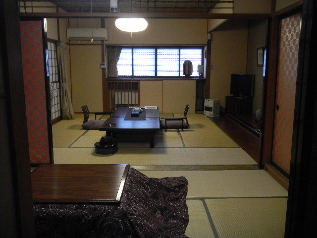 사진 중앙, 이 온천 여관에서, 제일, 숙박비가, 싼 class의 객실.사진 좌하는, 이 온천 여관의 식당(dining room).이 온천 여관은, 식사(저녁 식사 및 아침 식사)는, 제일, 싼 class의 객실의 숙박객만, 식당(dining room)에서 제공되어 그 이외의 객실은, 방내밀기(식당(dining room)에서 먹는 것은 없고, 호텔의 room service와 같이, 방까지 요리가 옮겨져 오고, 방에서 요리를 먹는 형식.무엇보다, 기본적으로, 요리가, 한 번에 옮겨져 오는 room service와 달리, 요리는, 저녁 식사의 경우, 기본적으로, 일명씩, 갓 만들어낸의 물건이, 옮겨져 온다)입니다.