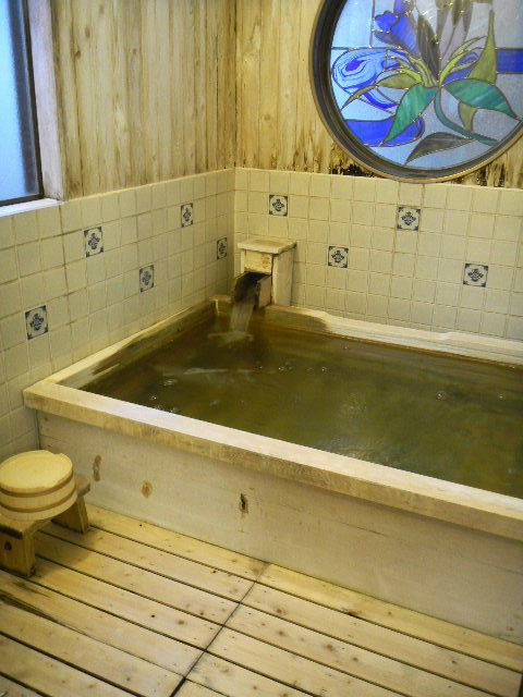 この温泉旅館の、温泉風呂は、男用の共同温泉風呂と女用の共同温泉風呂(それぞれ、屋内(室内)温泉風呂、温泉露天(野外)風呂、サウナ(sauna)が、一つずつある)が、一つずつと、貸切り温泉風呂(下の、補足説明参照)が、二つあります。